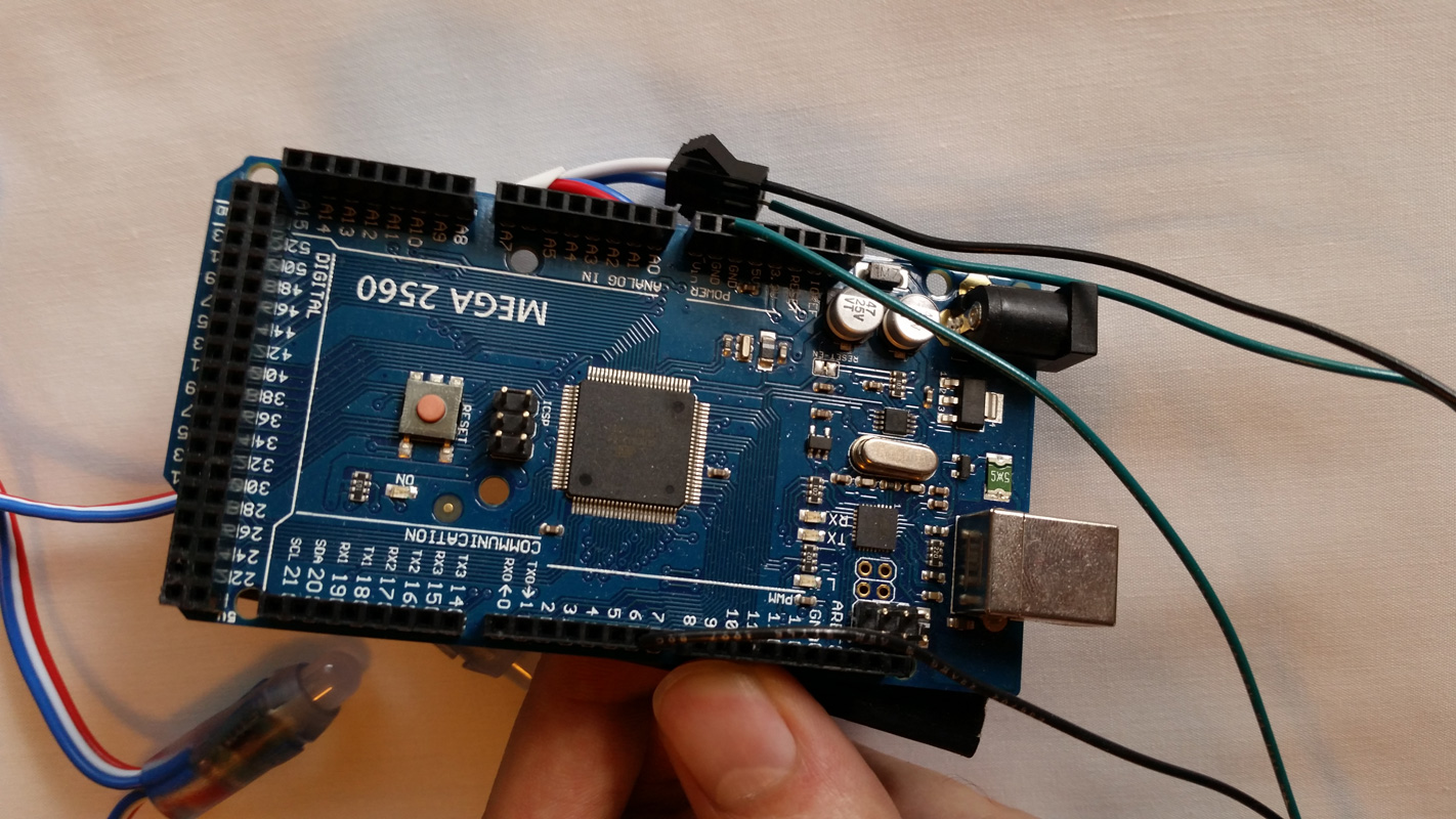 Finally, we’ll run wire from the end of the lights to the Arduino.