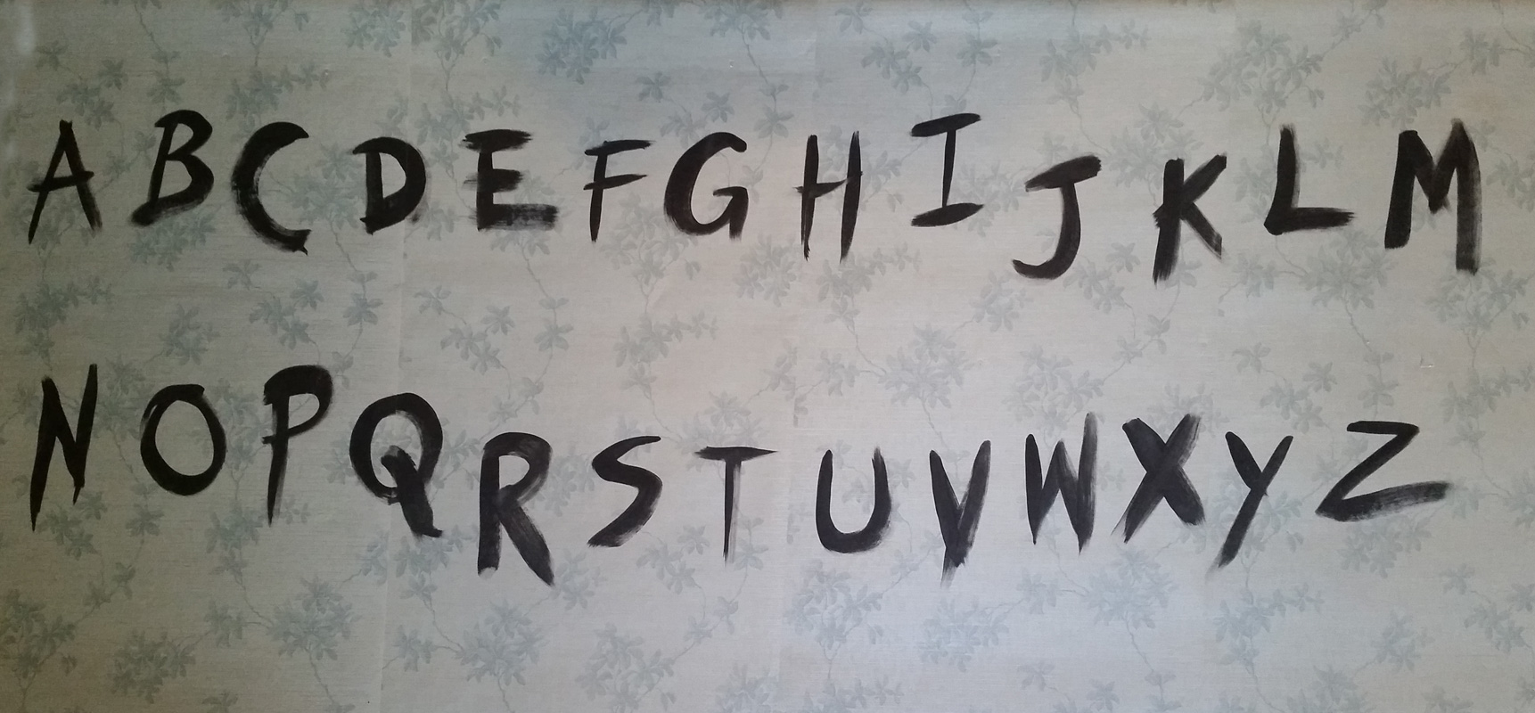 For the decorations, I went pretty simple. I took the retro wallpaper, the paint, and the paintbrush, and painted the letters A-Z in two rows on one end of my “wall”.